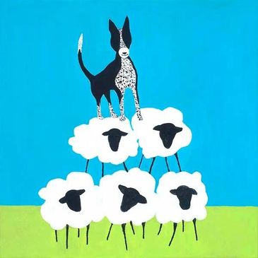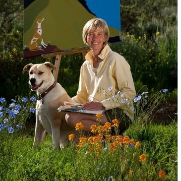 Most of my paintings are inspired by my two former rescue mutts, Rudy, and now Adobe. I find myself giggling in the studio while creating , lost in a joyful reverie. I hope that my paintings bring a smile to your face and some magic to your world.